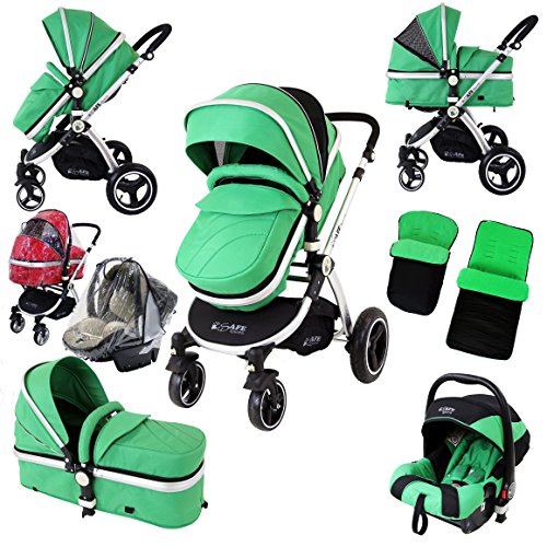 i-Safe System - Leaf Trio Travel System Pram & Luxury Stroller 3 in 1 Complete With Car Seat + Footmuff + Carseat Footmuff + RainCovers