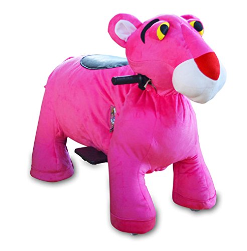 MINGZE TOYS Action Pony Ride on Toy Pony cycle Toy Ride on Pink Panther Stuffed Plush Animal Electric Scooter Kid Toy Bike,35" for Children above 4 Years Old,with Charger