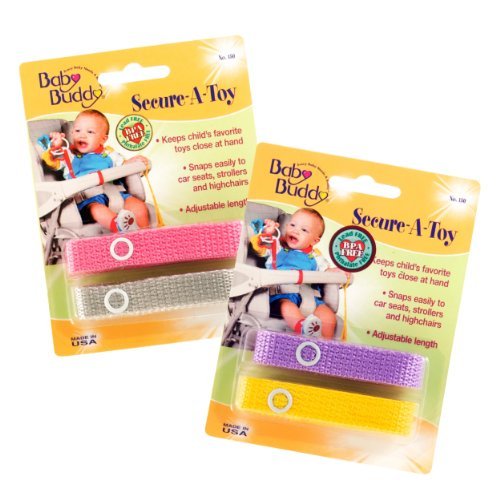 Baby Buddy 4 Count Secure-A-Toy Straps, Pink/Gray/Lilac/Yellow Color: Pink/Gray/Lilac/Yellow (Baby/Babe/Infant - Little ones)