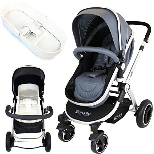 iSafe Baby Pram System 2in1 - Grey + iSafe Luxury Bedding (Cream)